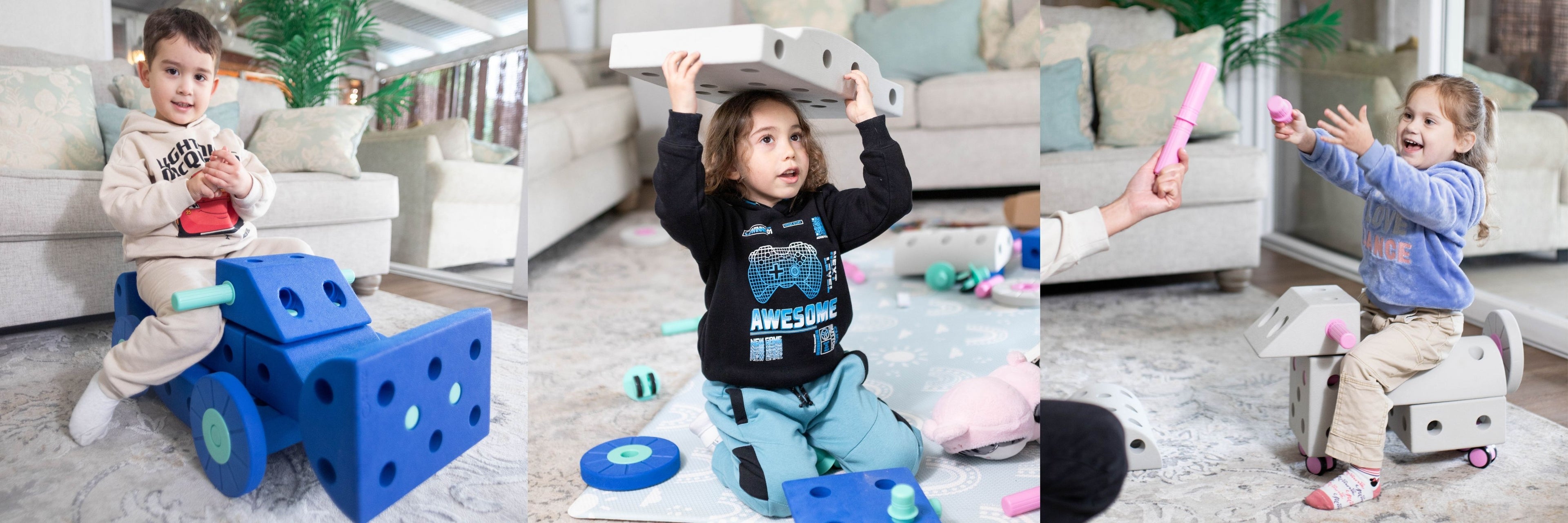 Ha sido un descubrimiento total en nuestra casa! Resistentes y fáciles de manipular. Fomentan la imaginación, la motricidad y el juego en equipo.