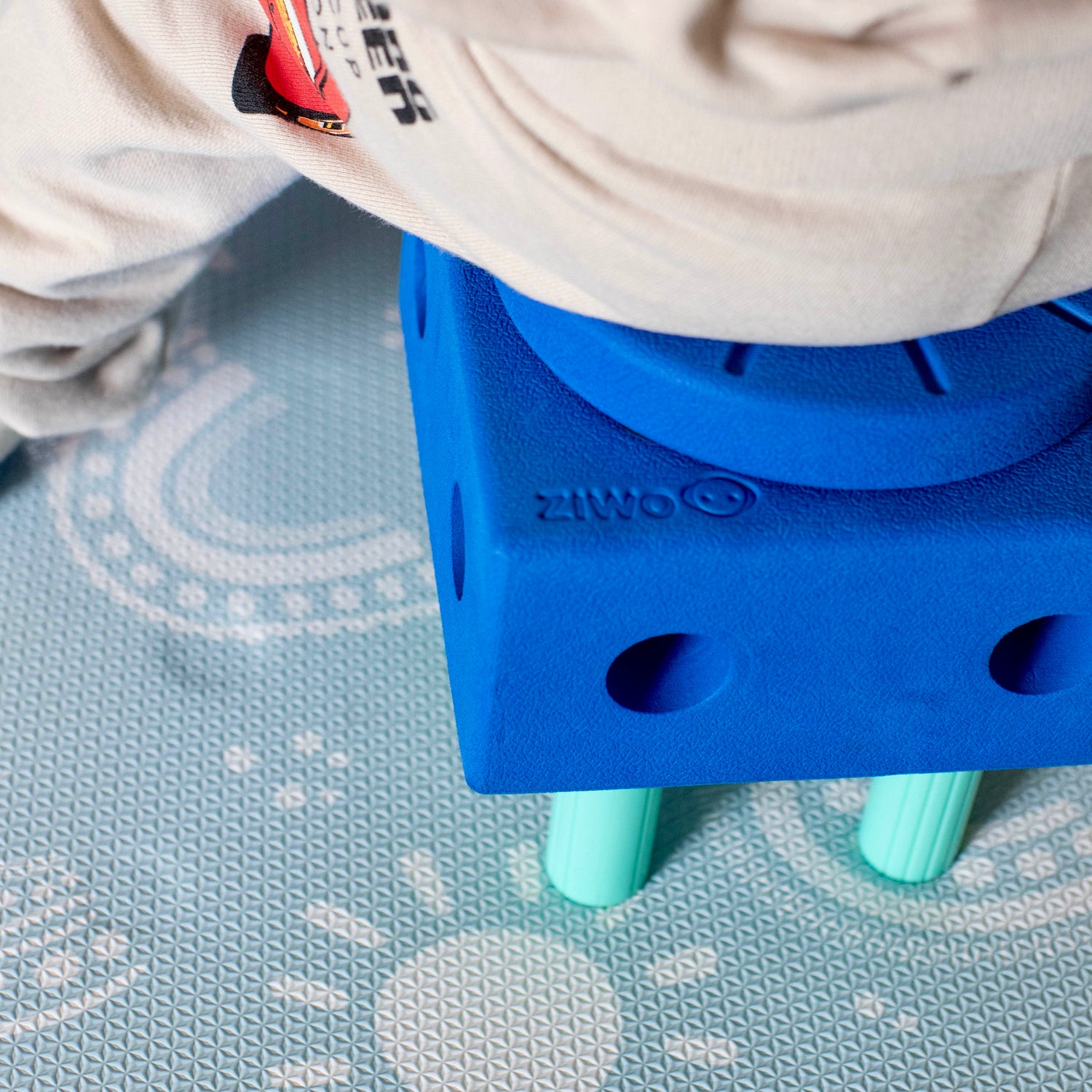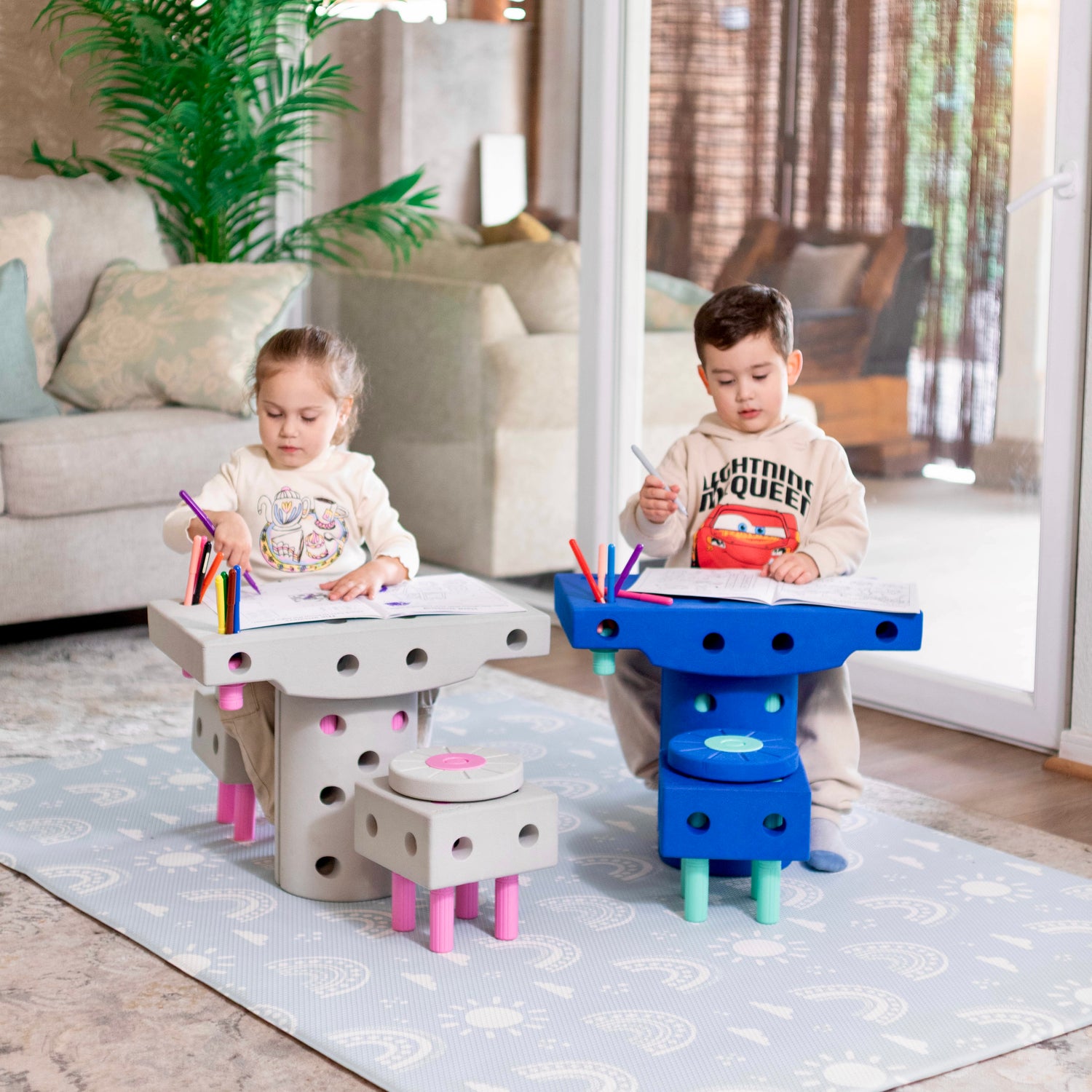Bloques de goma EVA prensada, conectores de plástico ABS y ruedas de ABS/EVA, con bordes redondeados, superficie suave y sin piezas pequeñas. Todo pensado para que niñas y niños jueguen con libertad y los padres tengan tranquilidad.