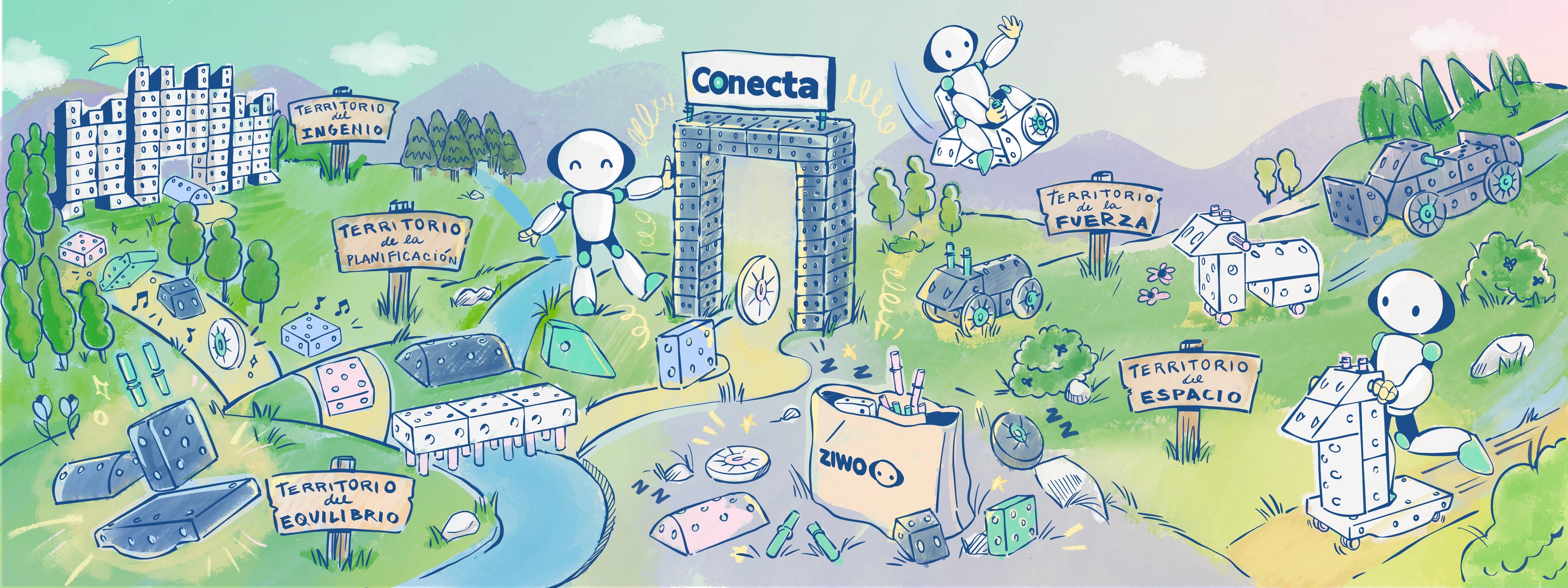 Aquí las formas de Conecta habitan en territorios que revelan como contribuyen en el desarrollo de los peques y distintas maneras de imaginar, construir y jugar. Es un espacio para compartir, donde cada creación puede inspirar a otros Ziwitos a explorarlas y descubrir nuevas formas.