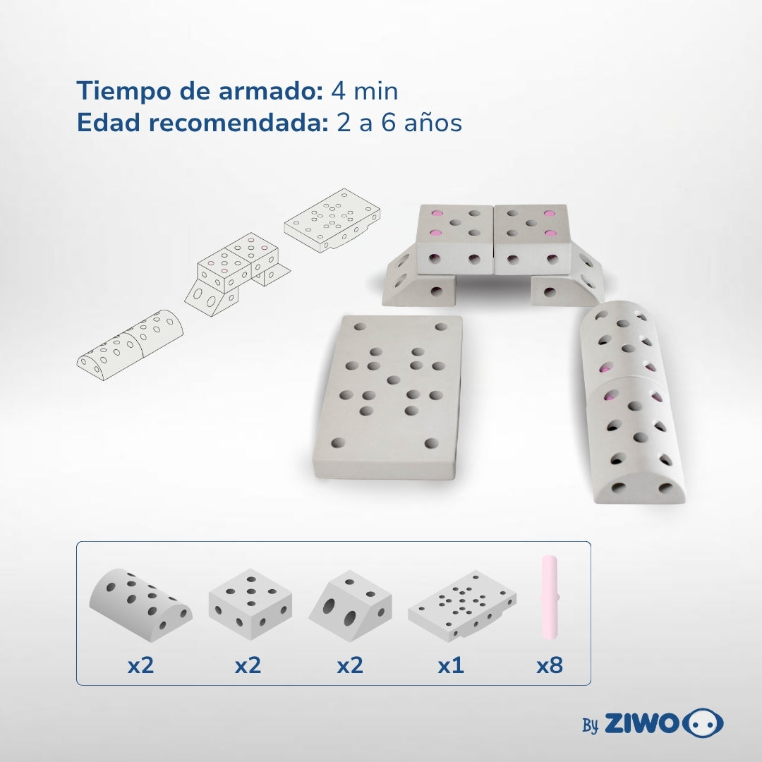 Permite descubrir altura y distancia de actividades cotidianas. Cada paso entrena equilibrio y seguridad al subir y descender.