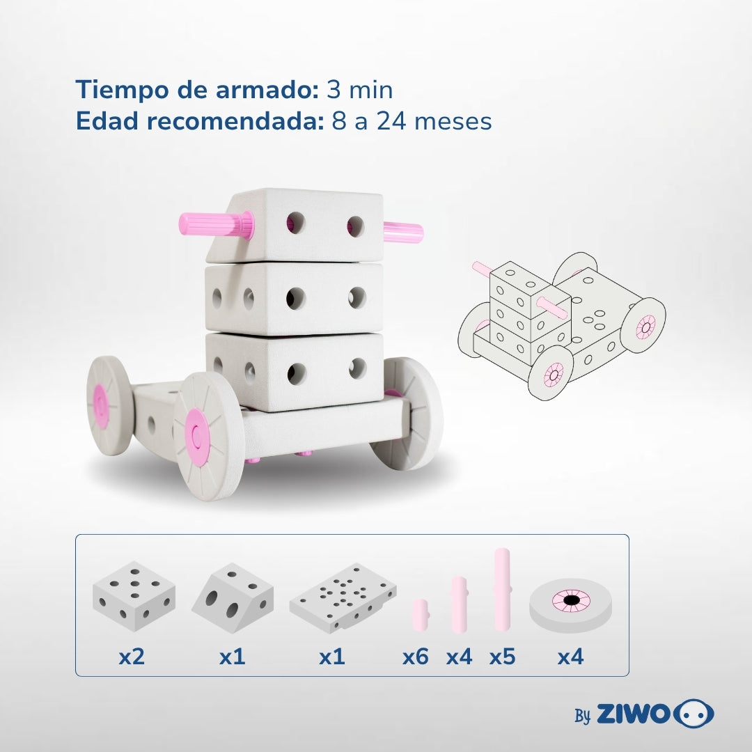 Integra fuerza, coordinación y juego imaginativo al empujar, arrastrar o construir. Favorece el trabajo muscular y la creatividad en movimiento.